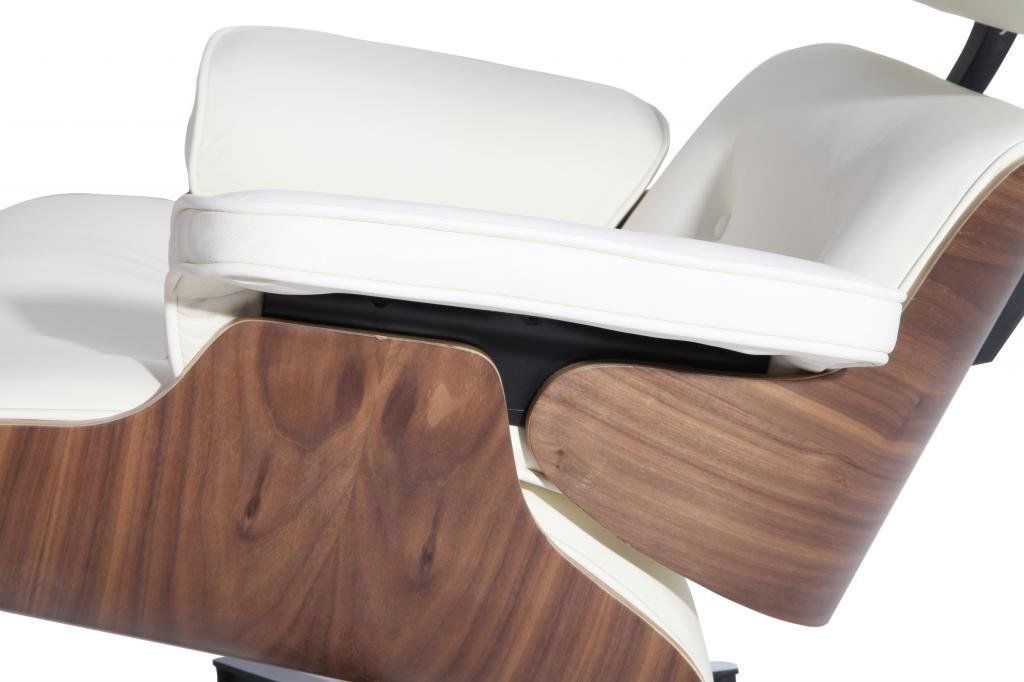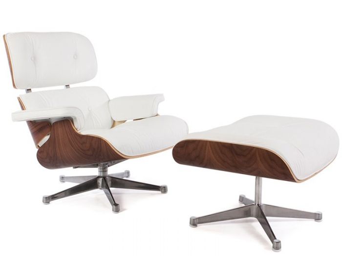 Eames Lounge Chair and Ottoman Walnut Replica – White Leather & Chrome Base