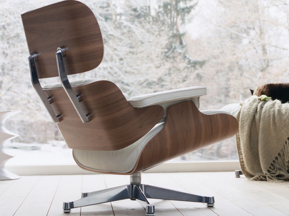 This Eames lounge chair and ottoman walnut fits well in most European living spaces.