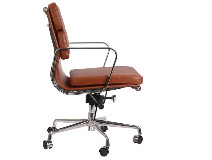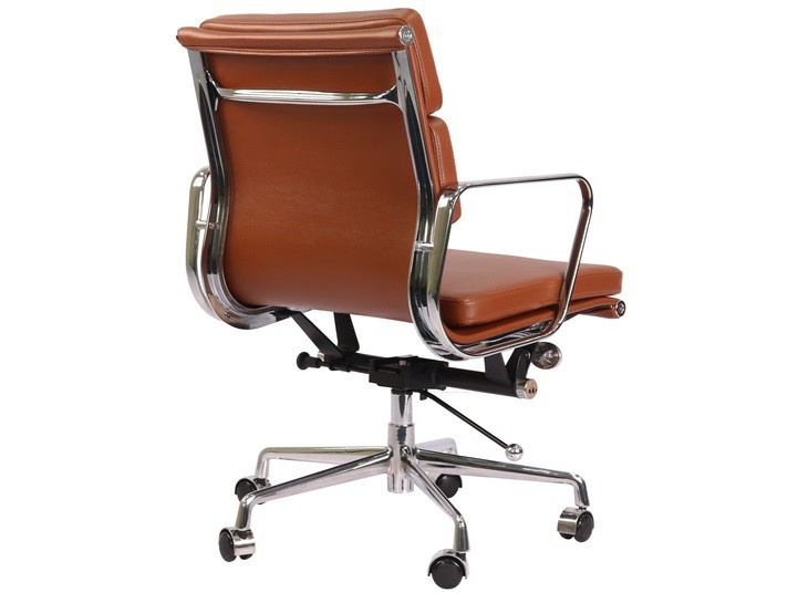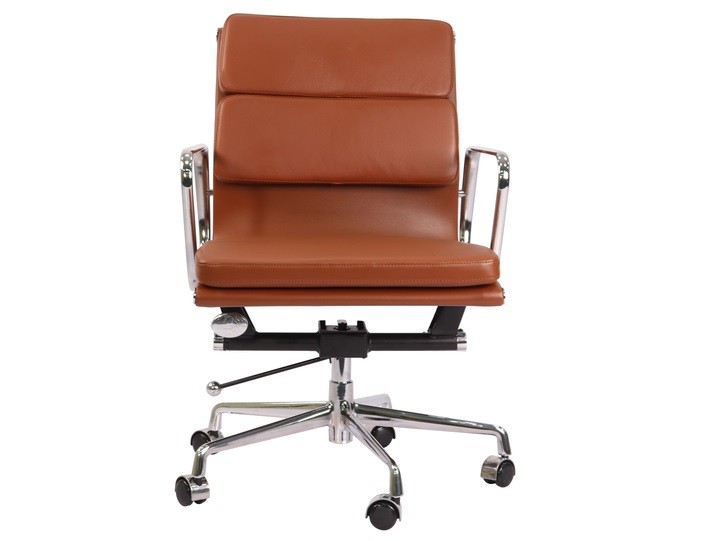 Bring professional mid-century modern comfort to your workspace with this tan leather EA217 Eames low back office chair replica Soft Pad. This premium low-back reproduction delivers the exact ergonomic support and style that made the Soft Pad series famous, now at a price that makes sense for stylish European home offices or professional spaces.