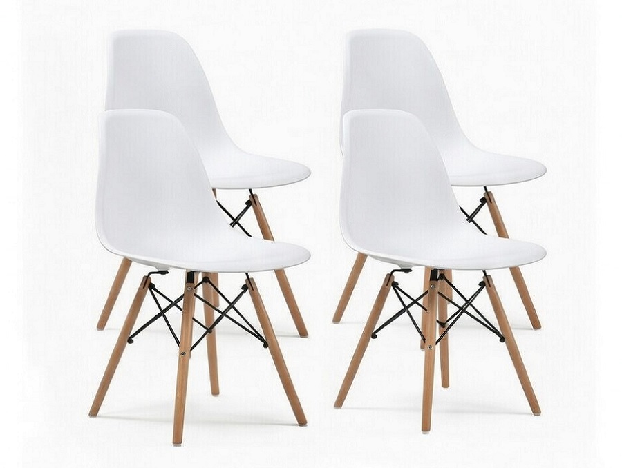 Brighten your family dining table with the white eames dsw set. This premium set of four chairs features crisp white molded shells and warm wooden legs, perfect for everyday meals in European and UK homes or larger dining rooms. The bright white finish instantly makes any space feel lighter and bigger while the ergonomic design keeps everyone comfortable during long family dinners or casual gatherings.