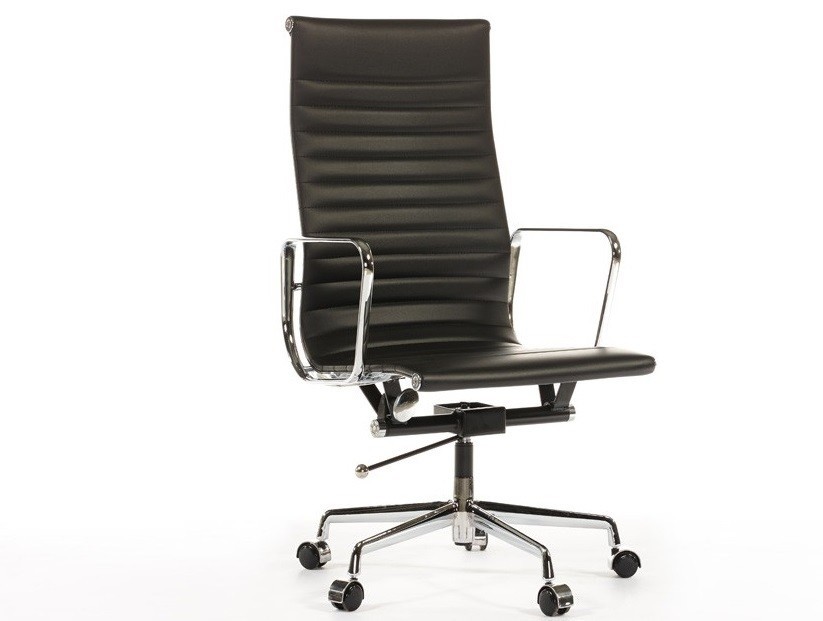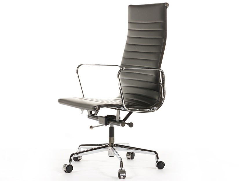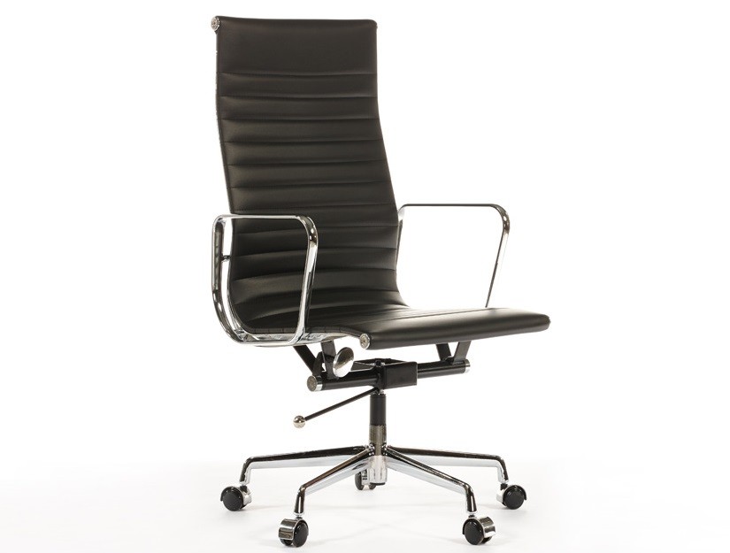 Bring sleek professional executive style straight to your European workspace with the ea119 high back thin pad ribbed executive office chair black leather. This premium high back replica features luxurious ribbed black Italian aniline leather cushions with a polished chrome aluminium frame. Perfect for modern offices or home studies across the EU, it delivers full adjustability so you stay comfortable and focused during long hours at your computer desk.