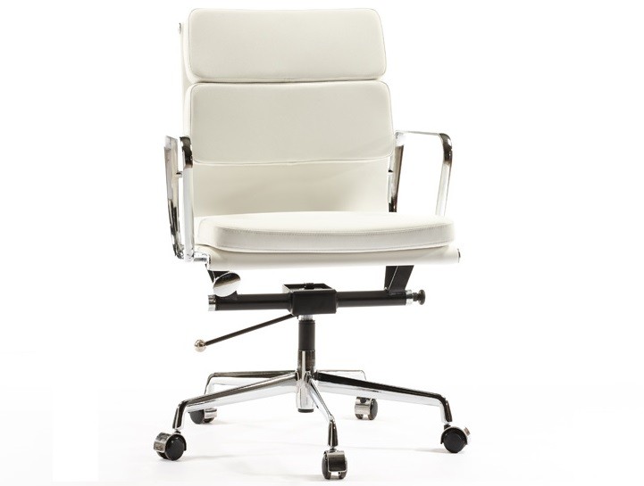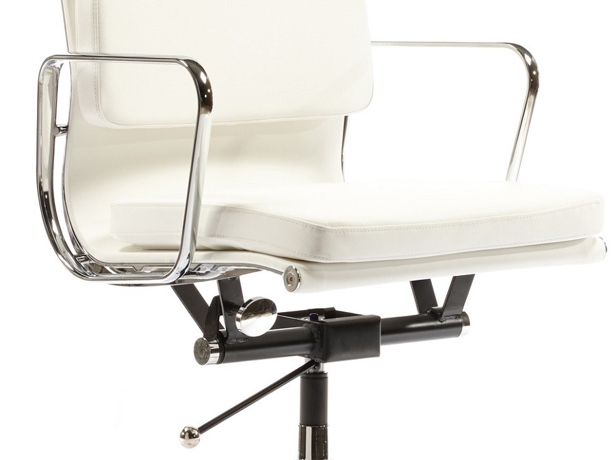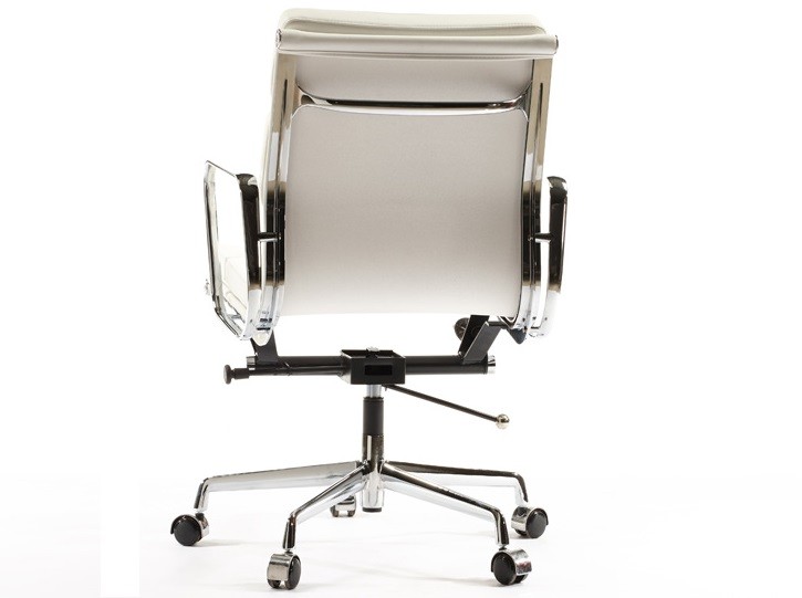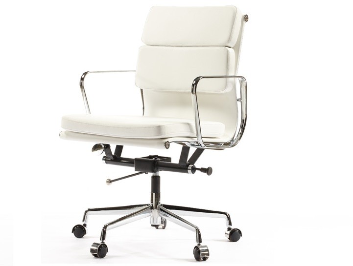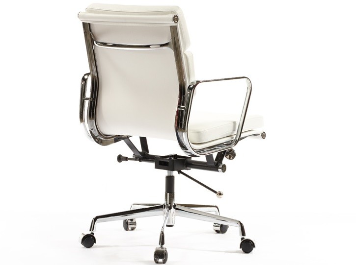 Elevate your workspace with the Eames style EA217 soft pad office chair white — a premium reproduction of Charles and Ray Eames’ celebrated 1969 Soft Pad design in a clean, statement-making white leather finish. This is a premium replica — not a genuine Vitra product — built with UV-stabilised white aniline leather that is treated to resist yellowing, individually suspended leather cushion pads, a polished chrome aluminium frame, pneumatic height adjustment, gentle tilt, and smooth-rolling castors. Chair only — ottoman sold separately. This chair is for design-forward buyers, architects, creative professionals, and minimalist home office owners across the EU who want a white leather chair that stays white. It is not for buyers who want a standard black executive chair — for that, see our Eames-style office chair replicas.