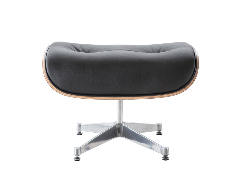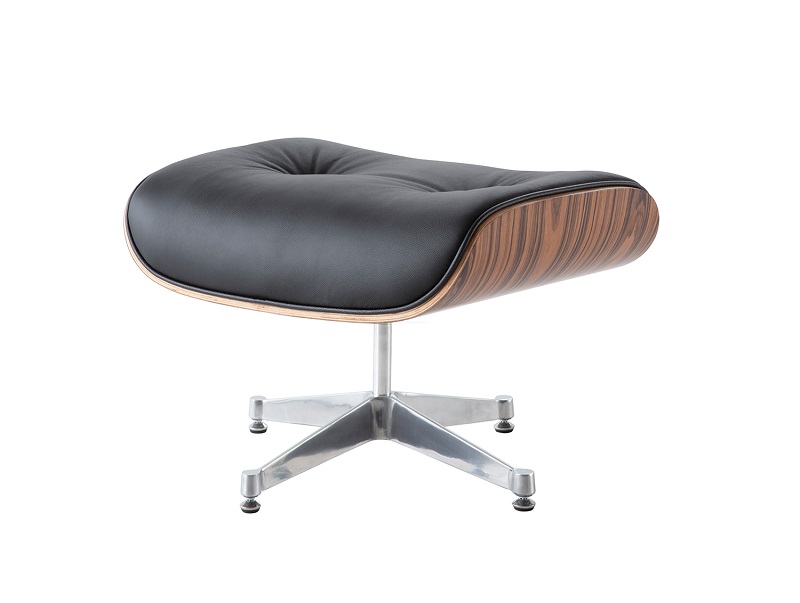 Yes. The ottoman features a matching polished chrome aluminium four-star base, finished to the same specification as the chair’s five-star base. The veneer and leather on both pieces come from the same production batch to ensure consistent grain and leather tone across the complete set.